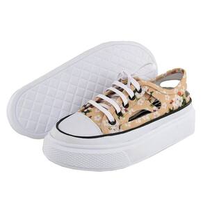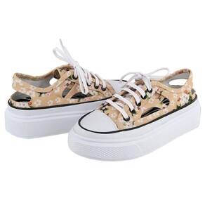 Tenis Casual Feminino Florido Detalhe Vazado Ajuste Cadarço Palmilha Em Gel Macia Confortavel Leve - 39 - Bege