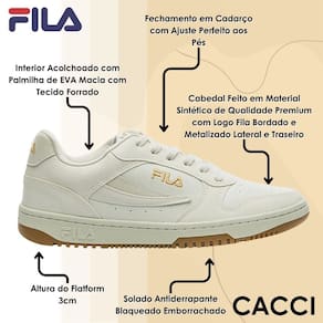 Acabamento premium – Cabedal em material sintético de alta qualidade com logo Fila bordado e metalizado na lateral e traseira.
