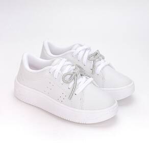 Uma escolha elegante e versátil para o dia a dia. Este tênis robusto vem com um charmoso laço de strass removível, adicionando um toque de brilho e estilo. Com design anatômico, proporciona suporte ideal para os pés em crescimento, enquanto o solado antiderrapante oferece segurança em diversas superfícies. O fechamento em cadarço garante um ajuste firme e personalizado. Perfeito para combinar com diversos looks, mantendo as meninas confortáveis e na moda.
