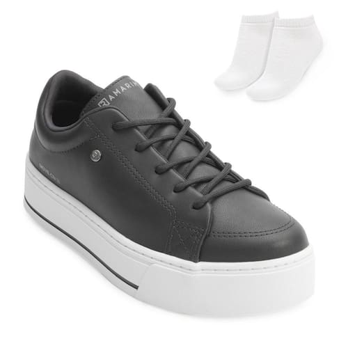 Nome: Tênis Casual Ramarim e Meia RM24-23972. Gênero: Feminino. Indicado Para: Moda-Dia a Dia. Ocasião: Casual. Material Externo: Alternativo. Forro: Têxtil macio. Ajuste: Cadarço. Detalhe: Costuras no cabedal e pin da marca metalizado. Palmilha: EVA macia e anatômica. Solado: Robusto em borracha com 4cm de altura. Peso do Produto: 1106 g (o peso varia de acordo com a numeração). Garantia do Fabricante: Contra defeito de fabricação. Origem: Nacional. Código Produto: 02024743. Marca: Ramarim. Acompanha um par de meias tamanho 33 ao 38. Composição: 83 % Algodão. 12 % Poliéster. 05 % Elastodieno.