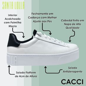 O Tênis Casual Feminino Flatform da Santa Lolla é a combinação perfeita de conforto e elegância. Com um design clássico e versátil, esse modelo se destaca pela sua praticidade e beleza, ideal para qualquer ocasião, desde um dia casual até compromissos mais formais. A união entre o estilo e o bem-estar é garantida em cada passo.