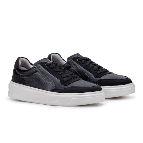 Tênis Casual Sapatenis Masculino Urbano Couro Leve - 45 - Preto