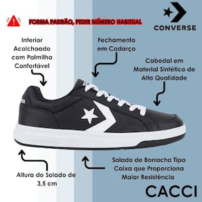 Inspirado nos anos 80 e reinventado para o presente, o novo Tênis Casual Converse Pro Blaze é a escolha perfeita para quem busca um visual versátil com um toque retrô. O design clássico, combinado com detalhes icônicos como o Star Chevron nas laterais e a logo Converse All Star, faz deste modelo um verdadeiro item de estilo. Ideal para compor looks casuais e despojados, ele oferece conforto e durabilidade, garantindo que você esteja sempre pronto para qualquer ocasião, sem abrir mão da autenticidade.