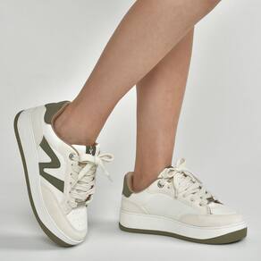Predomina: Sintético, nobuck-new floater-nobuck Cor: Branco e off white e verde musgo Forro: Tecido Poliester Solado: Sint.pvc Expandido Salto: Pvc Expandido Altura: 3,50 cm Peso líquido: 0,700 kg Peso bruto: 0,907 kg Dimensões da caixa individual (LxPxA) em milímetros: 300 x 230 x 115