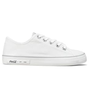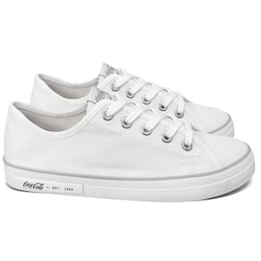 Descrição Principal Conheça o Tênis Coca-Cola Plaza Canvas Branco, o queridinho de quem busca estilo urbano com aquele toque clássico que nunca sai de moda. Com um visual totalmente monocromático em lona preta e detalhes sofisticados da icônica marca Coca-Cola, ele é perfeito para quem quer um look versátil, moderno e cheio de atitude.