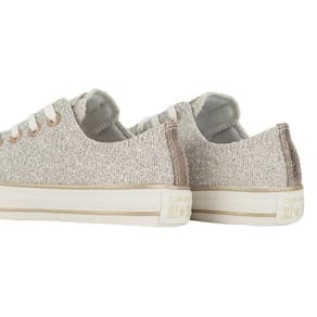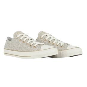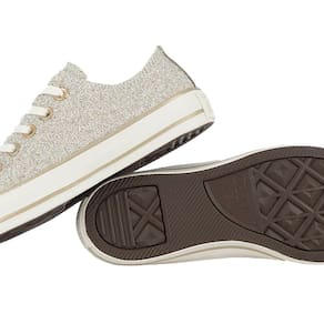 • A Converse apresenta o Tênis Converse Chuck Taylor Feminino sua nova coleção, que é inspirado no efeito Patina, uma obra de arte natural causada pela exposição de uma superfície metálica ao clima e ao tempo! Confeccionado em tecido jacquard com fios metalizados, com costuras duplas no cabedal para maior resistência e forro interno acolchoado para maior conforto. O logo Converse All Star é aplicado na heeltab do calcanhar e na tag da língua. O solado de borracha vulcanizada garante mais aderência a cada passo. Garanta já o seu!