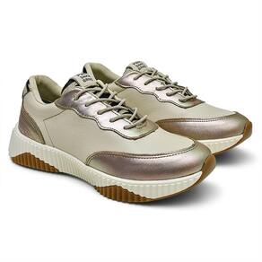 Tênis Couro Feminino Casual Confortável Versátil - 39 - Bege