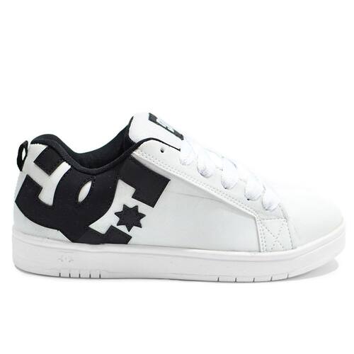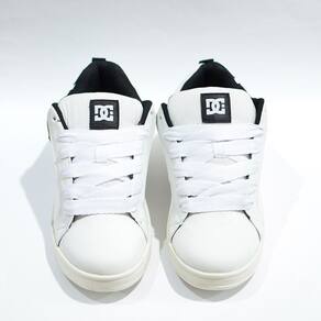 O Tênis DC Shoes Court Graffik tem o cabedal produzido em lona, couro sintético na parte externa, essa combinação de materiais garante maior durabilidade, solado "Cup Sole" tecnologia que produz uma sola mais resistente exclusiva DC Shoes. Lingua em espuma almofadada de tecido leve para circulação de ar e cadarço FAT LACE.