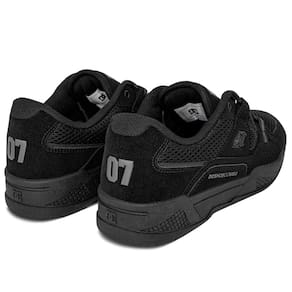 Detalhes da Marca DC Shoes: Logotipo icônico no cabedal e no solado, reafirmando a autenticidade do produto.