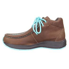 Tênis feminino Cow Way fabricado em couro na cor Marrom, possui cano curto, bico redondo com costura na parte superior, bordados no peito do pé e na lateral, detalhes na cor Azul e solado de EVA.