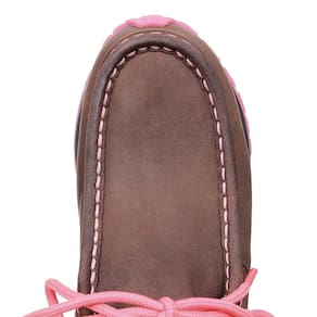 Tênis feminino Cow Way fabricado em couro na cor Marrom, possui cano curto, bico redondo com costura na parte superior, bordado e na lateral, detalhes na cor Rosa e solado de EVA.