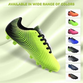 Chuteira de futebol com cabedal sintético e sola de borracha para jogar firme superfícies.