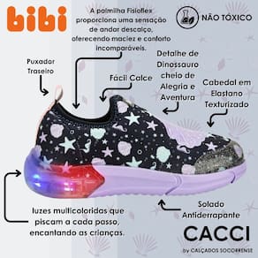 Além disso, o solado conta com luzes multicoloridas que piscam a cada passo, encantando as crianças.