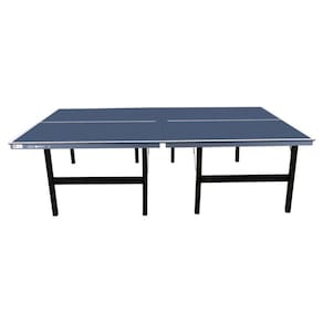 Tênis de mesa com campo de jogo confeccionado em MDF de 18 mm de espessura e com acabamento em laca azul fosco e linhas demarcatórias na cor branca, possui pés dobráveis em madeira maciça e medidas oficiais que atendem aos padrões da ITTF (International Table Tennis Federation) e oficializada pela FPTM ( Federação Paulista de de Tenis de Mesa).