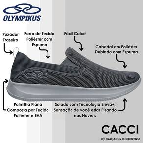 TECNOLOGIA: ELEVA + - Tecnologia exclusiva Olympikus, que explora o limite de expansão do EVA para alcançar máxima resposta, proporcionando o efeito trampolim, ou seja, absorvendo o impacto da passada e transformando essa energia em impulsão. Este EVA é leve e de baixa densidade, garantindo menor deformação e mantendo o conforto e a durabilidade.