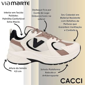 Esse modelo é extremamente versátil e pode ser combinado com produções casuais e despojadas, desde o jeans básico até vestidos mais leves, criando sempre composições atuais e cheias de atitude. Ideal para passeios, encontros ou até para acompanhar a rotina diária, esse Via Marte é a escolha certa para quem deseja unir moda, conforto e praticidade em um único tênis.