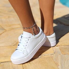 Tenis Casual Feminino Com Sola Anti-Derrapante Descubra o Charme do Conforto para seus pés com nosso sapato feminino Características Principais: Cabedal: Sintético Forro: Tecido Antibacteriano Palmilha: Confort Eva 4mm Sola: Borracha Antiderrapante Altura Da Sola: 3 Centrimetros Metais: Antioxidante Ajuste: Cadarço Fios De Algodão Peso: 0.600g Atenção na hora de escolher seu tamanho, o Tênis possui FORMA NORMAL, pedir o número que já está acostumado a usar, temos aqui a abaixo uma tabela aproximada de cm da palmilha para usarem como referência. TAMANHO DE PALMILHA 33 - 22.9 cm 34 - 23.2 cm 35 - 24.0 cm 36 - 24.5 cm 37 - 25.0 cm 38 - 26.0 cm 39 - 27.0 cm 40 - 27.5 cm Não perca a chance de adicionar um toque de elegância e conforto ao seu guarda-roupa. Clique em "Comprar Agora" e experimente a combinação perfeita de estilo e comodidade com nossos casuais Femininos. Seu próximo par de sapatos favorito está a apenas um clique de distância!