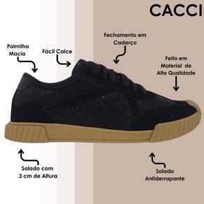 Tênis Feminino Brilhoso Moderno Conforto Casual Cacci - 34 - Preto