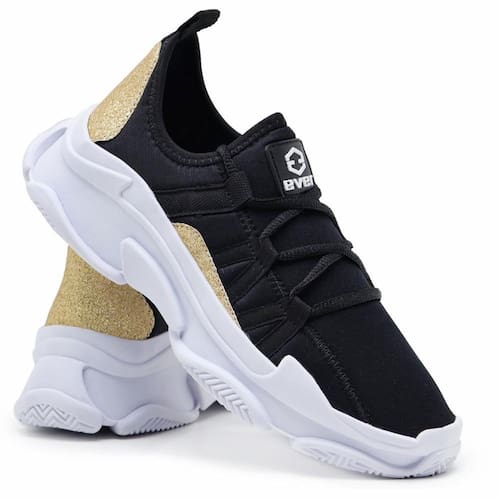 Tênis Feminino Caminhada Glitter Macio Confortável Academia - 38 - Bege