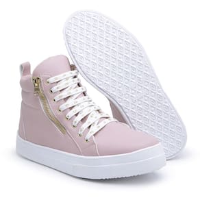 Tênis Feminino Cano Alto Botinha Sneaker Academia Com Ziper - 35 - Rosa