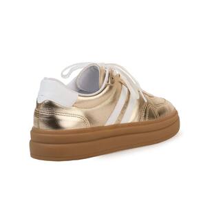 - Cabedal metalizado dourado com listras brancas