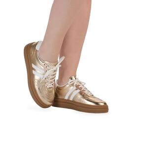Tênis Feminino Casual Bebece Metalizado Listras T2111-044: o destaque perfeito para seu look diário. Com design moderno e acabamento metalizado dourado, este tênis une estilo e conforto para mulheres que buscam versatilidade e autenticidade. A palmilha macia proporciona absorção de impacto, ideal para longas caminhadas e uso prolongado. Seu solado emborrachado antiderrapante garante segurança em diferentes superfícies, enquanto as listras laterais brancas adicionam um toque clássico e elegante. A combinação do cabedal metalizado com detalhes brancos cria um visual que se adapta do casual ao descontraído com facilidade. Experimente a sensação de estar na moda sem abrir mão do conforto em cada passo.