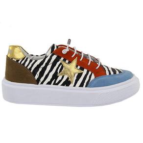 Tenis Feminino Casual Camurça Fechamento Cadarço Animal Print Zebra Palmilha Gel Macia Dia a Dia - 36 - Azul Claro