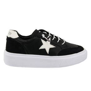Tenis Feminino Casual Camurça Fechamento Cadarço Aplicaçao Estrela Palmilha Gel Macia Dia a Dia - 35 - Preto
