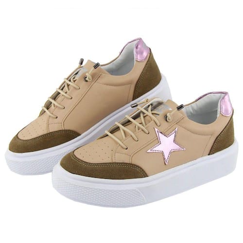 Tenis Feminino Casual Camurça Fechamento Cadarço Aplicaçao Estrela Palmilha Gel Macia Dia a Dia - 39 - Bege