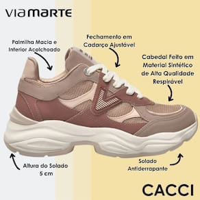 A sola Chunky, com seus 5 cm de altura, garante estabilidade, amortecimento eficiente e um toque extra de estilo. O interior macio e os materiais de qualidade envolvem os pés com conforto absoluto, permitindo que você encare a rotina com segurança e confiança. Um tênis pensado para mulheres que gostam de caminhar com estilo, sem abrir mão do bem-estar.