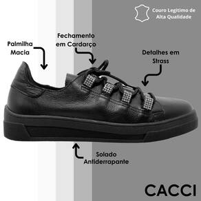 Tenis Feminino Casual Conforto Couro Strass CACCI - 37 - Preto