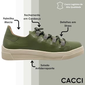 Eleva seu estilo com o Tênis Feminino Casual Conforto Couro Strass CACCI e descubra uma nova maneira de brilhar a cada passo. Adicione esse item essencial ao seu guarda-roupa hoje mesmo e descubra por que tantas mulheres estão escolhendo CACCI como sua marca de calçados preferida.