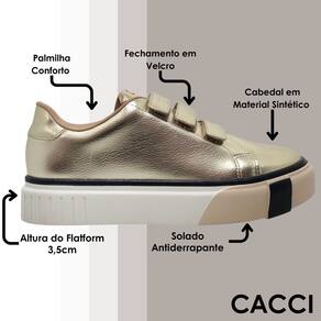 Fácil de Calçar: Com um sistema de fechamento prático autocolante, o Tênis Cacci é fácil de calçar e se ajusta perfeitamente aos seus pés.