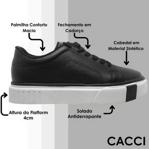 Design Moderno e Versátil: Com um visual contemporâneo e sofisticado, o Tênis Flatform Cacci é perfeito para complementar qualquer look, desde o casual até o mais elaborado.