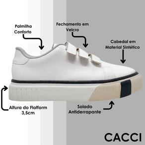 Fácil de Calçar: Com um sistema de fechamento prático autocolante, o Tênis Cacci é fácil de calçar e se ajusta perfeitamente aos seus pés.