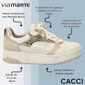 O tênis Via Marte é a escolha perfeita para quem busca estilo, conforto e um visual único. Seu solado flatform proporciona estabilidade e conforto durante a caminhada.