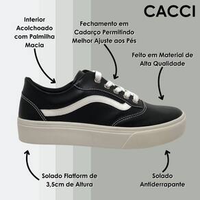 Apresentamos o novo Tênis Feminino Casual da Cacci, um modelo que une o melhor dos dois mundos: a modernidade e o estilo clássico. Este tênis é ideal para quem valoriza conforto sem abrir mão da elegância. A palmilha macia e o interior acolchoado oferecem um bem-estar incomparável durante o uso, enquanto o solado flatform antiderrapante garante segurança e estabilidade.