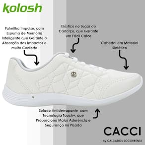 Outro ponto positivo do tênis Kolosh casual é a palmilha Impulse, que oferece um excelente conforto ao caminhar, graças à espuma de memória inteligente que garante a absorção dos impactos. Já o solado com tecnologia Touch+ proporciona maior aderência e segurança na pisada, tornando-se uma opção ideal para quem busca um tênis flexível e resistente para o seu dia a dia ou momentos de lazer. Com um peso de apenas 0,514 kg, este tênis é uma excelente escolha para quem valoriza o conforto e a praticidade no calçado.