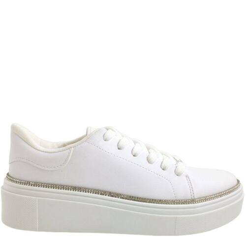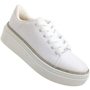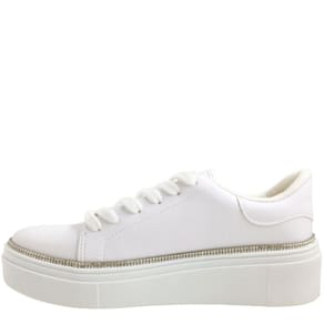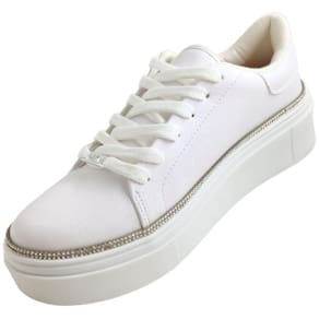 Porém o que realmente rouba o show são os apliques com strass cuidadosamente posicionados sob toda a entresola do produto e o aplique com o logo da marca no cadarço, transformando este tênis de extraordinário em excepcional. Sua versatilidade é o ponto forte. Combine com jeans para um visual casual chique, com saias para um toque feminino, ou até mesmo com vestidos para um look ousado. Este tênis é a escolha certa para todos os momentos.