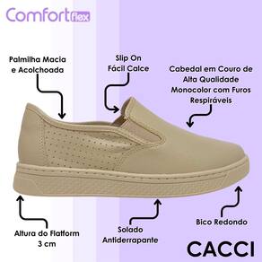 A palmilha macia e acolchoada proporciona um caminhar confortável mesmo após horas de uso, tornando esse modelo perfeito para jornadas longas, passeios, trabalho ou compromissos cotidianos. A altura do flatform de três centímetros oferece leve elevação com excelente estabilidade, enquanto o solado antiderrapante garante segurança e aderência ao solo em diferentes superfícies. Com bico redondo que dá um toque delicado ao visual, esse tênis combina com jeans, vestidos, alfaiataria leve e diversas outras produções. Ideal para quem valoriza conforto com um toque fashion, é uma escolha certeira para todos os momentos do dia.