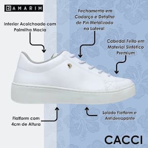 O Tênis Casual Feminino Clássico Flatform da Ramarim é a combinação perfeita de elegância e conforto, ideal para mulheres que buscam praticidade sem abrir mão do estilo. Com um design atemporal e sofisticado, este tênis é perfeito para acompanhar você em todas as suas aventuras diárias, desde passeios descontraídos até compromissos mais casuais.
