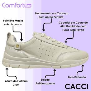 O tênis feminino flatform da ComfortFlex entrega o equilíbrio perfeito entre conforto e estilo para quem não abre mão de bem-estar no dia a dia. Seu cabedal é confeccionado com material de alta qualidade e possui pequenos furos respiráveis, que ajudam a manter os pés frescos mesmo após horas de uso. O fechamento em cadarço garante ajuste firme e personalizado, ideal para acompanhar sua rotina com segurança.