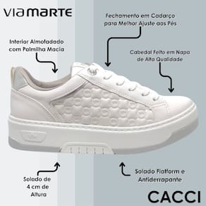 Além disso, o interior acolchoado com sua palmilha macia e os materiais de alta qualidade asseguram o máximo conforto para os seus pés. O tênis Via Marte é a opção versátil e elegante que oferece estilo e bem-estar em todas as ocasiões.