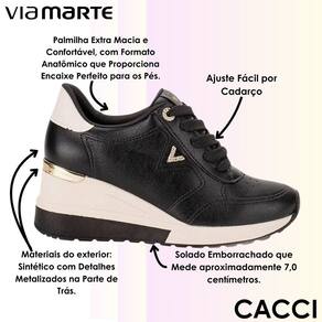 O tênis Via Marte foi desenvolvido para mulheres que valorizam conforto, estilo e modernidade em todas as ocasiões do dia a dia. Com design marcante e detalhes sofisticados, é uma peça versátil que combina com produções casuais, passeios descontraídos, compromissos urbanos e até mesmo ambientes que pedem um visual mais arrumado sem abrir mão do bem-estar. Seu exterior é confeccionado em material sintético de alta qualidade com acabamentos metalizados na parte traseira, que proporcionam um toque de elegância e originalidade. A palmilha extra macia possui formato anatômico que garante um encaixe perfeito, promovendo máximo conforto mesmo após longos períodos de uso. O ajuste é feito com cadarço, permitindo adaptação ideal aos pés e mais segurança ao caminhar. O solado emborrachado tem altura aproximada de 7 cm, oferecendo elevação na medida certa para valorizar a silhueta com estabilidade, enquanto sua base com tecnologia antiderrapante proporciona segurança e firmeza em diferentes tipos de superfícies. Este modelo é ideal para quem deseja se destacar com autenticidade e funcionalidade, sendo o equilíbrio perfeito entre design moderno, conforto absoluto e versatilidade para acompanhar sua rotina com muito estilo.