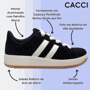 Seja para o dia a dia ou para ocasiões casuais, o Tênis Casual Feminino da Cacci é a combinação perfeita de conforto, estilo e qualidade. Garanta o seu e sinta a diferença no conforto e elegância em cada passo!