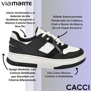 O tênis casual Via Marte une design moderno e conforto para acompanhar sua rotina com muito estilo. Seu interior acolchoado, aliado aos materiais de alta qualidade, garante uma sensação macia e aconchegante a cada passo, mantendo os pés confortáveis durante todo o dia. O fechamento em cadarço oferece ajuste seguro, enquanto o enfeite emborrachado com o nome da marca adiciona um toque exclusivo e sofisticado ao modelo. As costuras detalhadas valorizam o visual, trazendo um charme diferenciado que combina com produções casuais ou mais elaboradas. O bico arredondado complementa o design, proporcionando um caimento harmonioso no pé e reforçando seu apelo versátil. O solado caixa, além de garantir estabilidade, contribui para um caminhar seguro e confortável, tornando o calçado ideal para longos períodos de uso. Perfeito para combinar com diferentes peças do guarda-roupa, desde jeans e calças alfaiataria até vestidos e saias, é a escolha certa para quem busca praticidade, estilo e bem-estar no dia a dia.