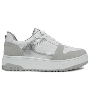 Branco e Prata, a Combinação da Versatilidade: A combinação de branco e prata torna este tênis versátil e fácil de combinar com diferentes roupas e estilos.