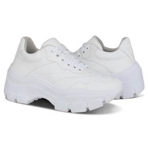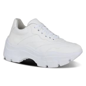 Tênis Feminino Chunky Cadarço Cano Curto Casual Conforto - 32 - Branco