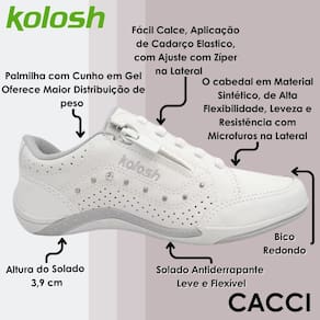 O tênis para ser seu aliado em qualquer desafio do cotidiano: de calce fácil, graças ao fecho-éclair estrategicamente colocado na lateral do peito do pé, entrega ainda um design incrível, enquanto os cadarços tradicionais de amarrar são substituídos pelo elástico para ajustar ainda mais o calçado ao pé e o cabedal clean recebe a aplicação de cravos e microfuros em locais estratégicos do pé, para melhor transpiração. Já a palmilha recebe cunho em gel, oferece ainda mais absorção de impacto na caminhada.
