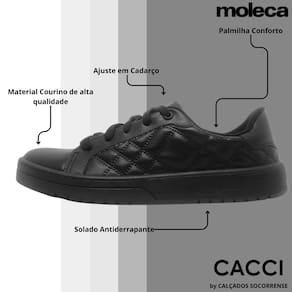 A palmilha macia oferece suporte e conforto adicionais, enquanto a sola flexível proporciona uma pisada leve e natural. Seja para um passeio descontraído no parque ou para atividades do dia a dia, este tênis Moleca é a escolha perfeita para quem busca combinar conforto e estilo em um único calçado.